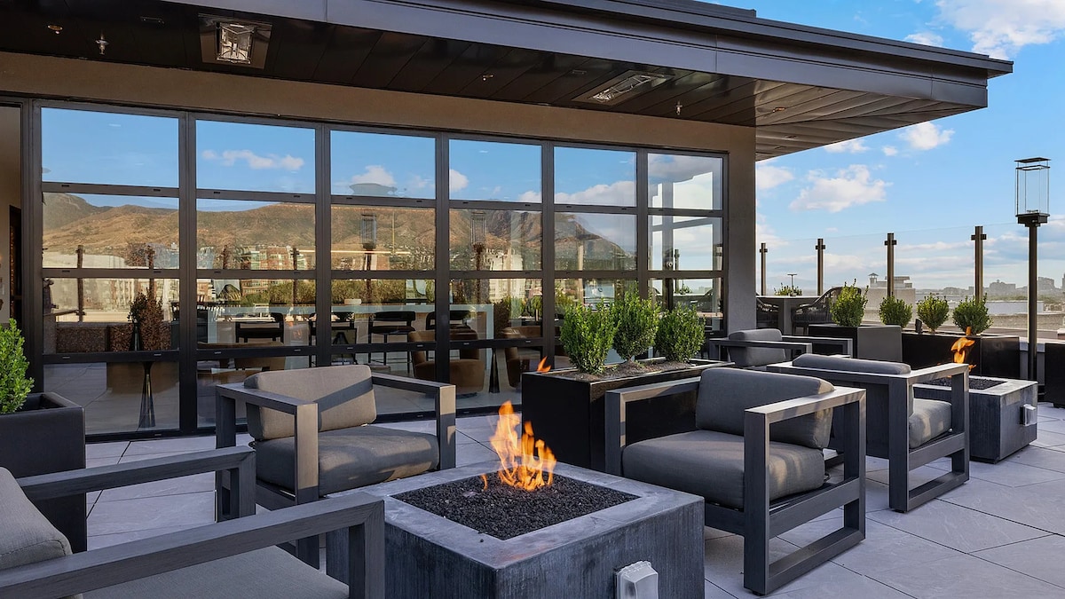 Experience luxury and convenience in the heart of SLC! With stunning mountain views and top amenities, this is the perfect home base. Located 2 blocks from the freeway and across from TRAX, you’re minutes from it all. • 🛏️ King bed + FREE washer/dryer • 🏊♀️ Year-round heated pool & spa • 🚗 FREE gated parking • 💪 2-story fitness center • 🎥 Movie theater & game room • 🌟 Rooftop lounge • 📺 55” Roku TV + 1200 Mbps WiFi • 🕒 7 min to downtown | 9 min to airport | 35 min to ski resorts