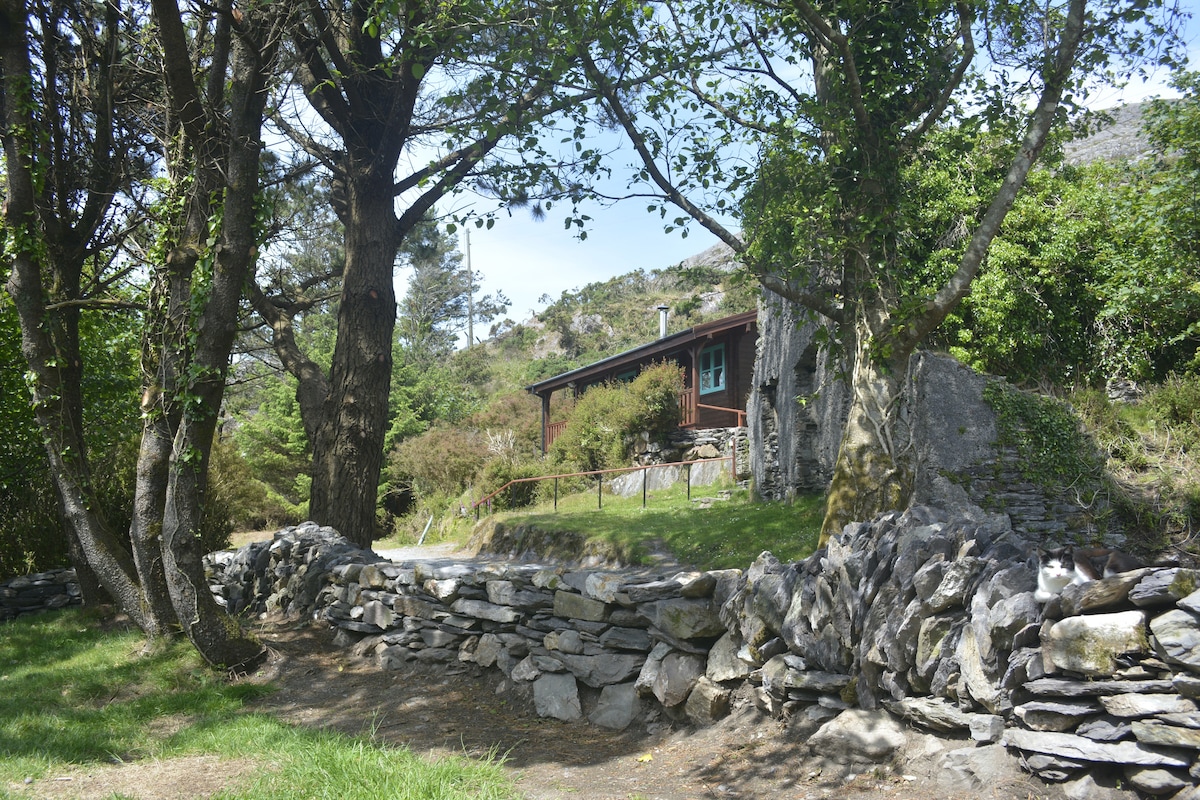 Le chalet du Douce Mountain est une charmante petite maison autonome située au pied de la montagne du Douce. Il y a un espace de vie avec une cuisinière et une kitchenette au rez-de-chaussée . Une échelle mène le loft avec 2 lits. C'est un lieu très calme entouré de nature. Notre autre maison d'hôtes est à environ 100 mètres plus bas . Notre propre ferme est à environ 500 mètres. Il est idéal pour quelqu'un qui cherche un endroit très calme pour se détendre et s'immerger dans la nature.