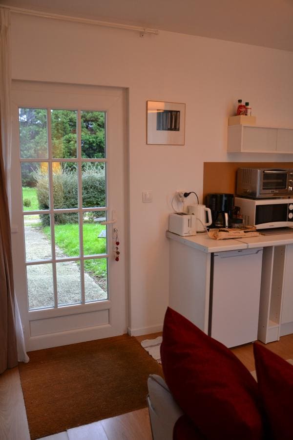 Maisonnette cosy très confortable pour un fabuleux séjour à la campagne, le long d'un chemin où coule la petite source… A 15' de Caen, à proximité d'une belle rivière, et d'une superbe voie verte. Barbecue, Bains de soleil, Vélos, Table de ping-pong, Fléchettes, sont mis à disposition pour des moments de loisir et de détente. Nous mettons tout en oeuvre pour que vous puissiez passer un séjour reposant et que vous puissiez découvrir agréablement notre magnifique région.