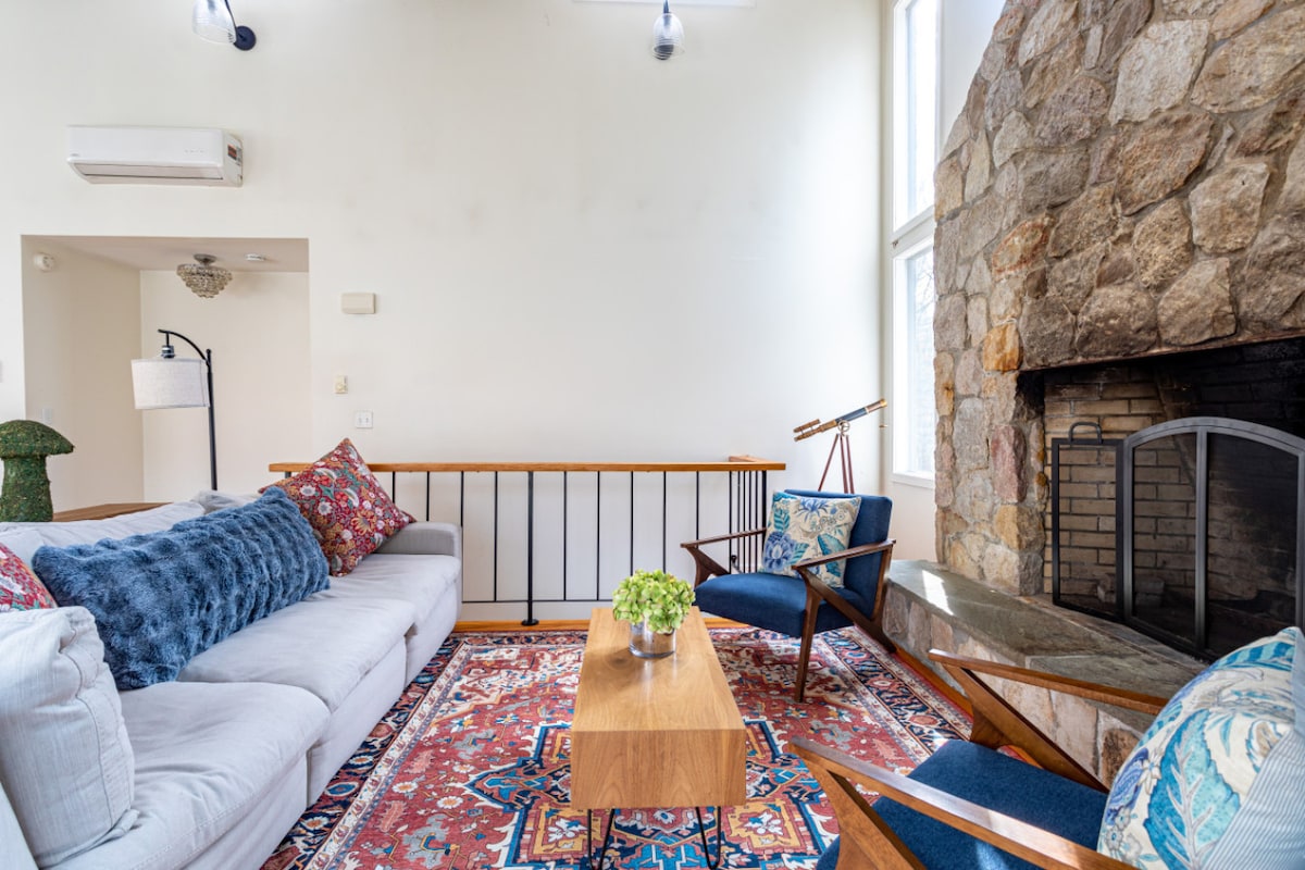 Évadez-vous dans cette retraite moderne et confortable où la nature vous entoure. Endormez-vous au son des hiboux, des grillons et des grenouilles. À seulement 2 minutes de Rosendale et à quelques minutes en voiture de Kingston, New Paltz et Stone Ridge, avec des restaurants et des sentiers à proximité. Profitez d'un foyer au gaz, d'un coin lecture avec vue sur la cime des arbres et d'une grande terrasse qui donne l'impression d'être dans les arbres. L'espace extérieur privé comprend un foyer, le tout sur un terrain serein de 3 acres offrant une paix et une tranquillité totales. Votre escapade parfaite dans la vallée de l'Hudson vous attend !