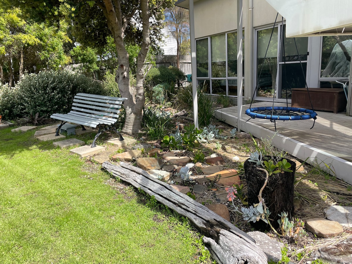 Fully furnished holiday Bungalow with covered outdoor area & BBQ, overlooking a private golf course, set in a peaceful, scenic location, it's a perfect retreat. We have more than 7 beaches in easy walking distance. Also nearby, visit the Pilot Station Café (Thu–Mon in winter), Maritime Museum & Penguin rookery. Enjoy scenic walks, bike trails, fishing, swimming, breathtaking sunrises & sunsets—all just moments away. Whether exploring or unwinding on the nearby beaches, there's plenty to enjoy!