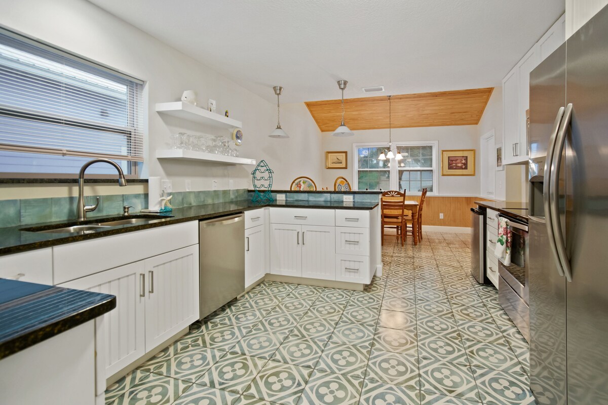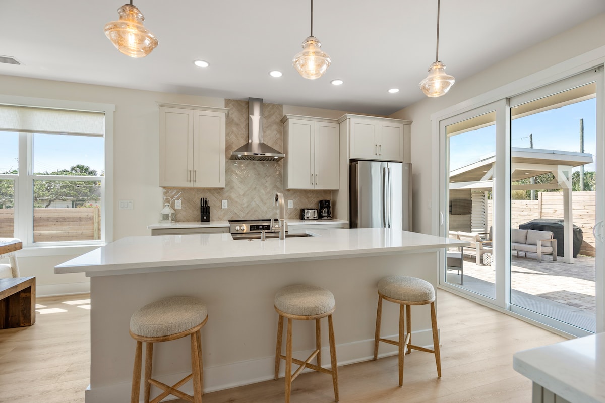 Cette maison de luxe construite en 2022 est à quelques pas de la plage ! C'est le camp de base ultime pour les familles, les amateurs de plage et les plaisanciers qui veulent une escapade sans stress. 💧Piscine d'eau salée chauffée : avec un coin repas extérieur 🏖️Emplacement : à 4 minutes à pied du sable fin de Crescent Beach 🛏️ 2 suites parentales : cet aménagement de 4 chambres comprend deux suites principales avec salles de bain privées ⛵️ Stationnement pour bateaux : apportez votre bateau ou votre jetski. La rampe de mise à l'eau de Green Road est à 0,5 mile au sud 🔌Recharge de véhicules électriques Tesla : incluse dans votre séjour