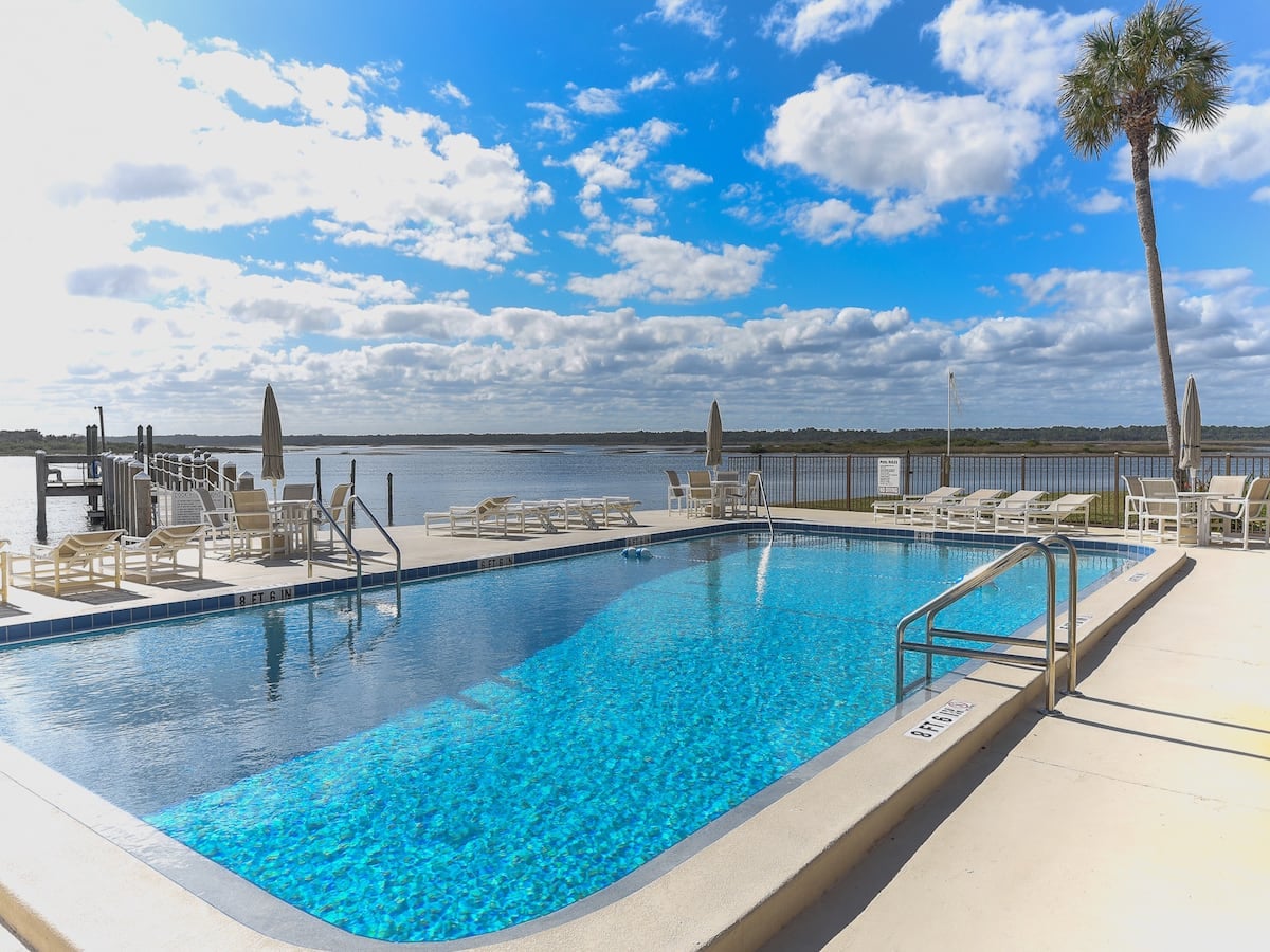 Ce logement paisible offre un séjour détente pour toute la famille. Quatre piscines chauffées ouvertes, des courts de tennis, des terrains de pickball, des terrains de basket-ball, une aire de jeux pour enfants en font une maison de vacances confortable pour toute la famille. Le portail ouvert 24h/24 vous offre un environnement de vie sûr et confortable face à la mer et un lever de soleil inégalé chaque jour. Si vous en avez assez de la mer, de l'autre côté du quartier se trouve un parc national. À 15 minutes de Saint Augustine, transport pratique. (Pas d'animaux de compagnie)