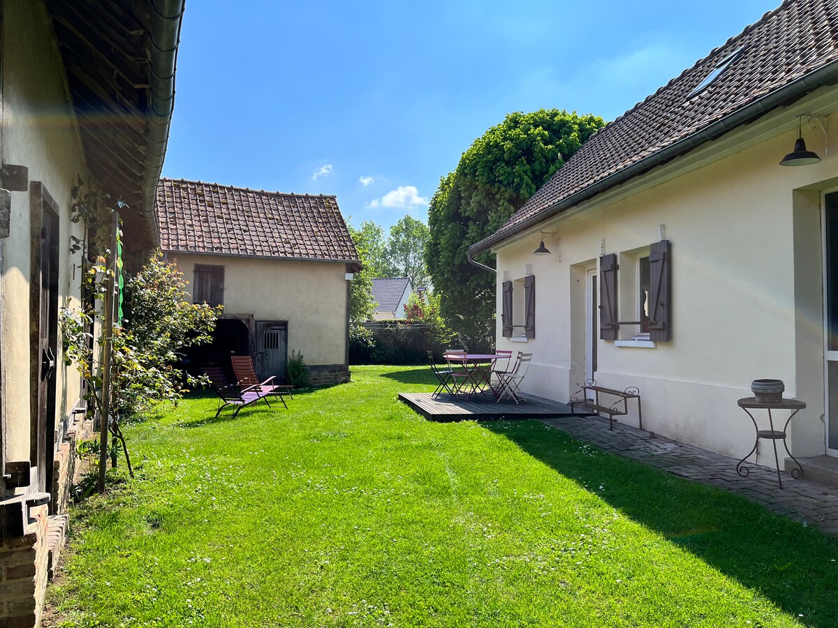 Charmant gite de 60 métres carré dans la campagne. Proche d'Abbeville, à 30mn de la baie de somme, Situé entre la vallée de la Somme et la vallée de la Bresle. Vous pourrez également profiter d'un grand espace verdoyant et arboré Dans le village un city stade avec aire de pic nique, terrain de pétanque, agrets A 300 mètres du gîte un poste de recharge pour véhicule électrique. Accés internet et WIFI gratuit