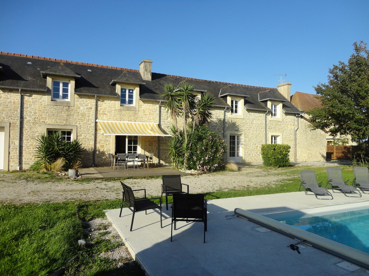Gîte idéalement situé, au cœur des sites du débarquement, à 1km de la mer. Situé au bout d'un chemin campagnard, le gîte de Lalo vous accueillera dans le cadre typiquement normand d'un ancien corps de ferme. Maison indépendante, jardin clos, pas de vis à vis, calme absolu. Gîte entièrement rénové en 2020, il bénéficie de 4 chambres indépendantes , 2 belles salles de douche, et d'un très vaste séjour couplé avec la salle à manger et la cuisine. Disponible pour un minimum de 3 nuits.