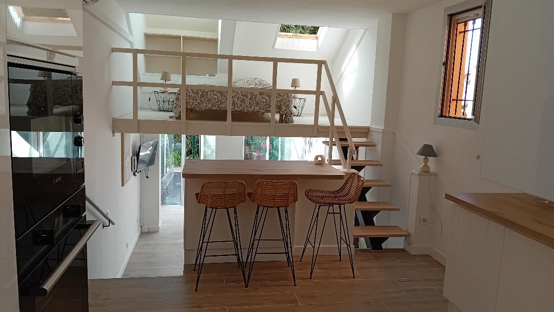 Joli loft à la décoration raffinée sur mesure, vous pourrez y séjourner en couple avec ou sans enfants, entre amis ou encore pour vos voyages d'affaires ! tout équipé, wifi climatisation, situé sur la place Nationale au coeur de la vieille ville et au calme ! Chambre avec lit double, penderie, espace douche et salle de bain à l'étage, vue mer fort carré et montagne. Salon avec cheminée décorative, canapé lit, cuisine toute équipée -Non accessible à personne à mobilité réduite