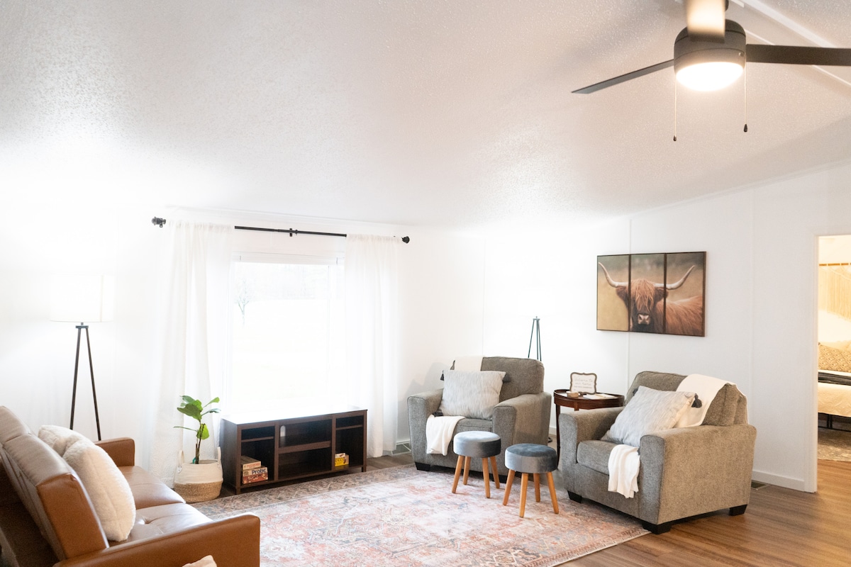 Assez de place (et de stationnement) pour tout le monde. Capacité d'accueil de cinq personnes, lave-linge et sèche-linge, foyer, appareils électroménagers neufs, meubles, machine à café Keurig et Espresso. Comprend une connexion Wi-Fi GRATUITE. À seulement 1/2 mile de l'hôpital Genesis et encore plus proche de la pharmacie Northside.
