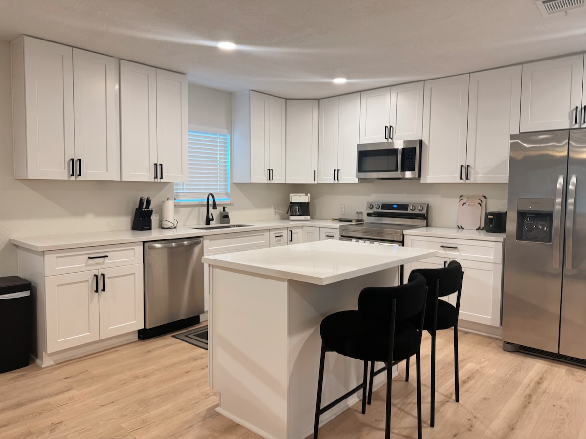 L'ensemble du groupe bénéficiera d'un accès facile à tout ce que Houston a à offrir dans cette maison située au centre. Le bungalow « MOON LIGHT BY THE BAY » peut accueillir 6 personnes, 2 PLACES DE STATIONNEMENT (stationnement gratuit dans la rue) et un espace cuisine/salon ouvert. Parfait pour recevoir la famille et les amis. Fournit une connexion Wi-Fi, une télévision connectée et un coin salon extérieur. Profitez de votre séjour en vous détendant dans la douche debout de la salle de bain principale et en vous relaxant sur le canapé avec votre livre préféré. »