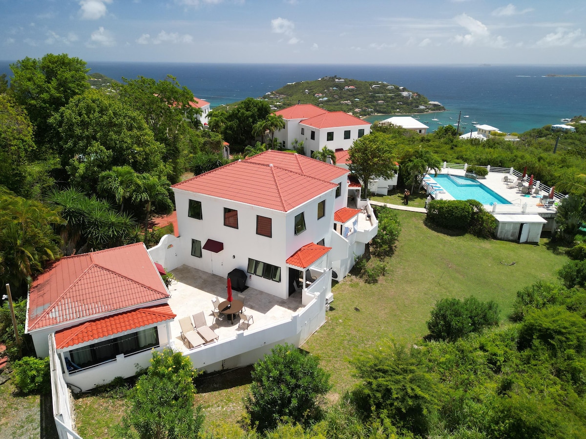 Détendez-vous au son des vagues de l'océan dans votre paradis privé avec vue panoramique ! Cette maison indépendante dispose de 2 nouveaux lits king size, 2 nouveaux lits doubles, 2 nouveaux canapés-lits simples, de chambres avec climatisation, d'une cuisine de chef avec cuisinière à gaz et WiFi rapide, et d'un générateur de secours. Des espaces de vie aérés offrant une vue imprenable sur St John ! SUV 7 places pour des aventures inoubliables sur l'île. Convient aux enfants, parfait pour les familles. Stationnement facile + emplacement privé calme. Un rapport qualité-prix incroyable et super central !