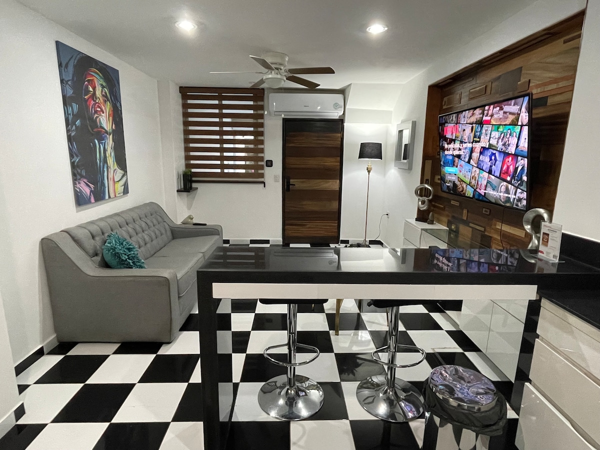 Bienvenue dans cette chambre moderne haut de gamme dans l'une des zones les plus centrales et les mieux connectées de Culiacán, à un pâté de maisons de l'avenue Obregón et à quelques pas de La Lomita, avec un accès facile à La Primavera et à proximité du stade des Tomateros. Il dispose d'une cuisine équipée, d'un lit double, d'un canapé-lit simple et d'une salle de bain moderne. Idéal pour les courts ou longs séjours. Nous proposons également la facturation. Au plaisir de vous rencontrer !