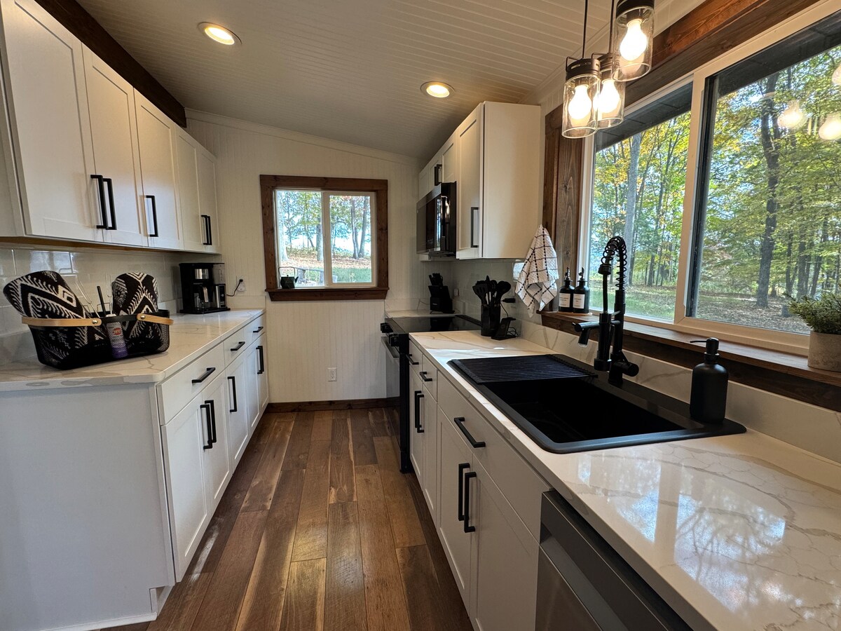 Le chalet Ambleside offre une intimité totale pour une personne seule ou un couple à la recherche d'une escapade sereine entourée par la beauté des montagnes des Appalaches. Cette cabane magique est idéalement située pour les voyageurs, mais Ambleside donne l'impression d'être une retraite isolée nichée dans les bois au-dessus d'Elk Fork Creek. Le chalet est une adorable petite maison, offrant 500 pieds carrés de surface habitable avec une kitchenette, un coin salon et une salle de bain avec douche. Le lit Queen Size est à l'étage dans la chambre en mezzanine.