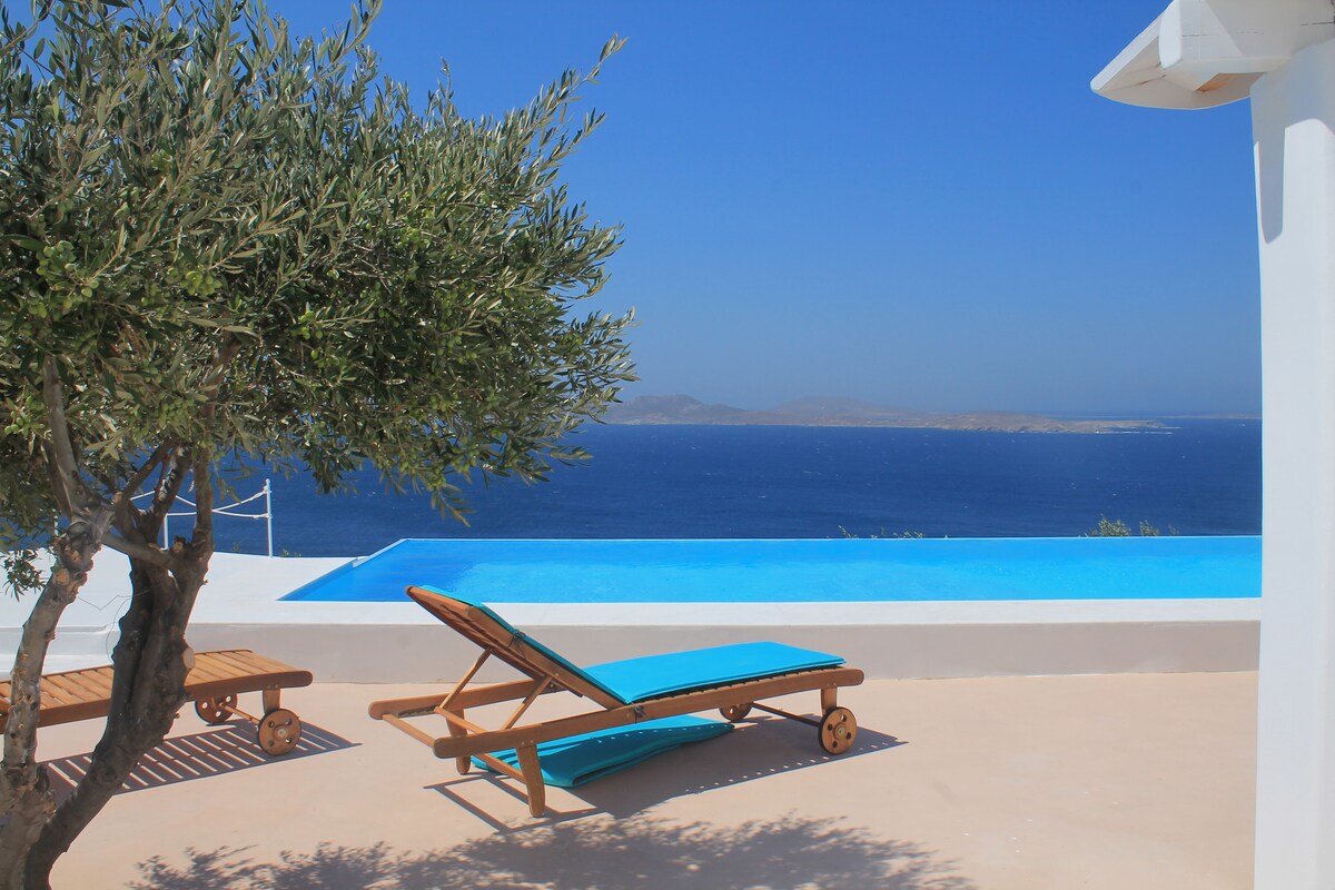 Le moment est venu pour moi de mettre mon propre paradis à votre disposition. Sea Horizon est la nouvelle escapade idéale pour des vacances romantiques. Vue sur la mer unique, levers de soleil à couper le souffle ! Reflétant l'architecture traditionnelle des Cyclades, la villa offre un maximum d'intimité et de confort. Sentez-vous comme chez vous et détendez-vous dans la piscine privée ! Panier de bienvenue avec des fruits et du vin ! Nous adorons rendre nos voyageurs heureux ! Célébrez votre occasion spéciale avec nous et profitez d'un gâteau gratuit !