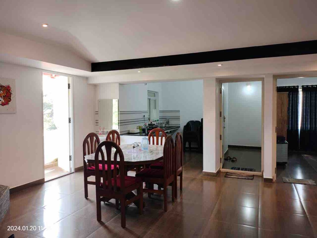 Nous sommes situés dans un endroit paisible et serein, au milieu de la plantation de café, avec une belle vue, entouré de verdure luxuriante. Nous avons une chambre privée. Nous servons des plats savoureux, hygiéniques et traditionnels de type «Malnad». Nous disposons d'un grand jardin d'extérieur sur la cour avant. Nous offrons des activités, telles que: Feu de joie, Badminton, Jeux d'intérieur, Trail Walk in the Coffee Estate. Vous pouvez apprendre comment le café et le poivre sont cultivés et récoltés; tout en vous détendant parmi les sons des oiseaux qui gazouillent.