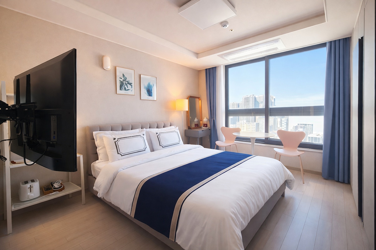 2 minutes de la gare de Jungang-ro, Dongseong-ro • Rideaux occultants • Parking gratuit • Netflix • Changement de linge de lit