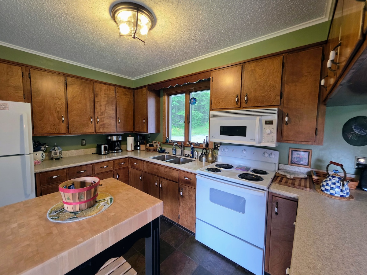 Bienvenue dans votre retraite privée dans les Montagnes Blanches - une maison de vacances spacieuse et familiale sur 5 acres boisés à seulement 2 minutes du centre-ville primé de Littleton, NH. Notre maison paisible de 3 chambres peut accueillir 8 personnes et offre l'équilibre parfait entre confort, nature et accessibilité. Détendez-vous au coin du feu, faites un barbecue sur la terrasse, cuisinez des s'mores sur le foyer ou chargez les kayaks. Que vous soyez à la recherche de vacances relaxantes en famille, d'un bureau en forêt ou d'un camp de base pour vos aventures, Stone's Throw est l'endroit idéal.