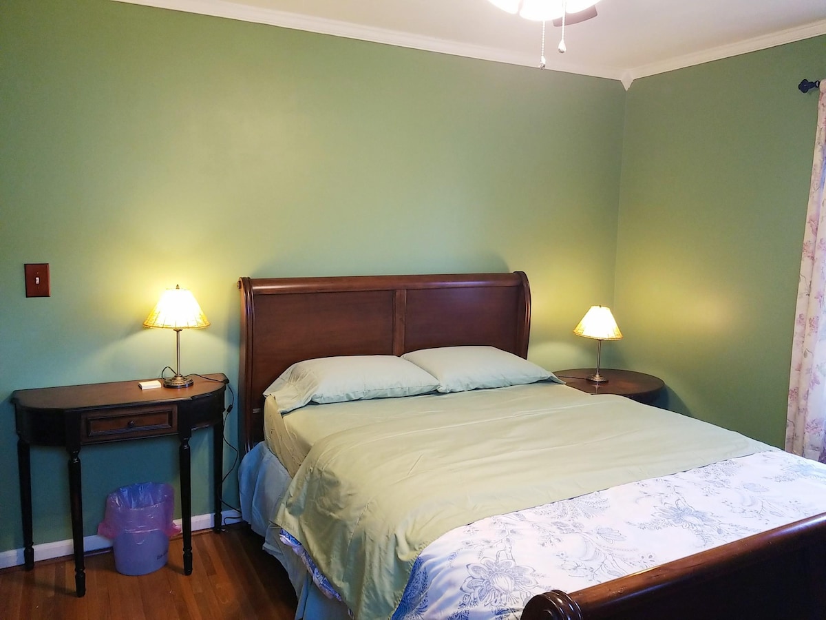 Maison de campagne des années 1950 avec suite au sous-sol privée, entrée et terrasse privées. Kitchenette, salon, chambre avec bureau intégré, salle de bain et 2ème chambre à deux lits quasi-privée. Niché dans le beau Belmont avec accès facile à tous les grands inter-États, à 1 mile de Belmont Abbey College, à <6 miles de l'aéroport CLT, à <8 miles de USWhitewater Ctr, à <20 mins du centre-ville de Charlotte. Limite d'1 voiture et veuillez vous garer sur le trottoir devant notre maison. Situé dans un quartier de village de moulin « en transition » assez ancien. Nous avons 1 chaton et un chiot. PAS d'animaux domestiques, de tabac, de fêtes.