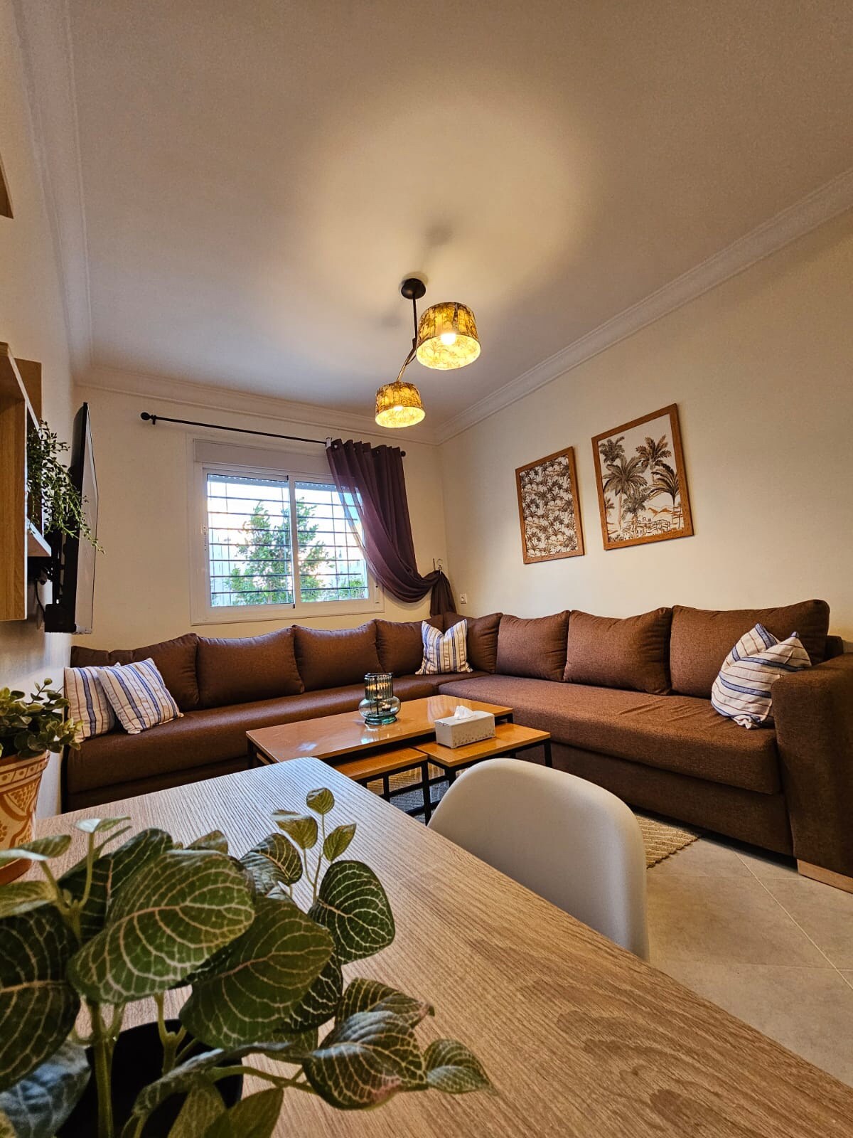 Ce logement affiche un style résolument unique.ce petit bijoux bénéficie d’un calme exeptionnel à Tanger à côté de la fameuse forêt diplomatique et la plage de sidi kacem Cet appartement est réservé aux couples mariés et familles et personnes seules c’est un espace non fumeur réservé aux personnes calmes et respectueuses et je serais reconnaissante si vous prenez soin de ses équipements et décoration faite avec amour