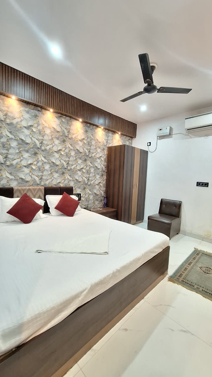 Chambre de luxe près du temple Kashi Vishwanath | Séjour confort et patrimoine haut de gamme Conçue avec des intérieurs modernes et des équipements haut de gamme, la chambre dispose de la climatisation, d'une literie moelleuse et d'une salle de bain bien aménagée. Les voyageurs peuvent profiter de l'énergie vibrante des rues du temple. Idéal pour les pèlerins, les couples et les voyageurs à la recherche de commodité et de classe, notre espace assure la sérénité à quelques pas du divin. Réservez dès maintenant pour découvrir l'âme de Varanasi dans le confort, le luxe et la tradition.
