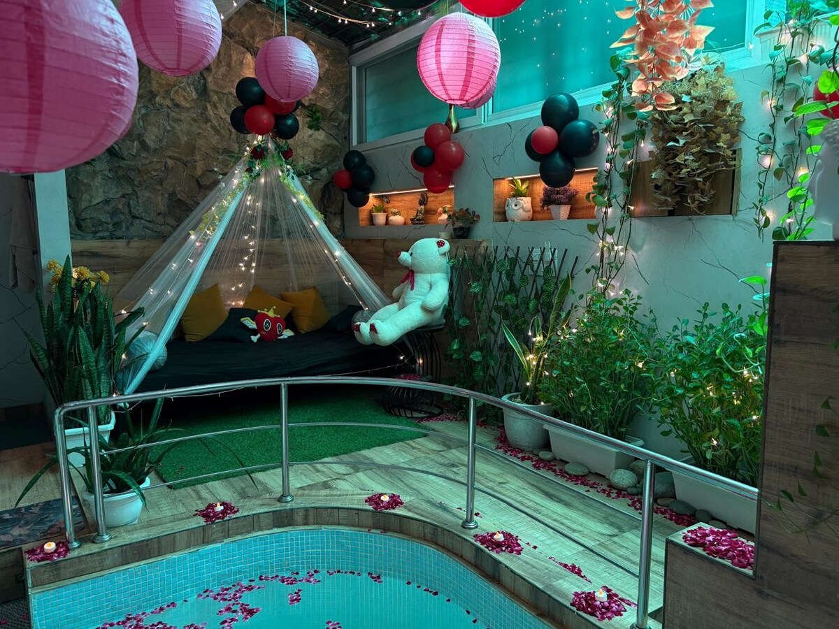 The Kudarat property features a private plunge pool attached to the bedroom on the ground floor, which is completely separate, and you don't have to share any space with anyone else. That's why Kudrat is ideal for staying, relaxation, anniversaries, and birthday celebration. In this place we have tried to get the vibes of nature like rocks and greenry and full of cozyness. And in this property, you'll feel like comfortable, safe and secure, home-like vibe😇