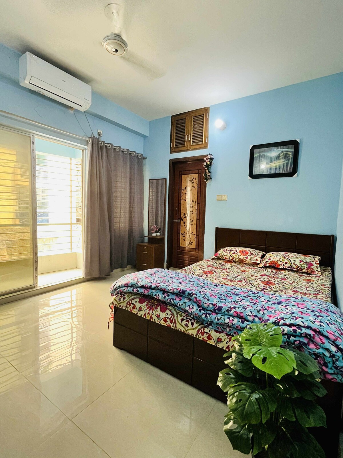 Détendez-vous avec toute la famille dans ce logement paisible. Séjour de courte durée, vacanciers, restauration autonome, climatisation, Wi-Fi, très proche : hôpital, université du sud-est, marché Agora, bazar Banasree Kacha, Rampura, hatirjheel. Ascenseur 24h/24, générateur, parking gratuit, transports en commun disponibles. Tous les ustensiles, poêles à frire, cuisinières sont disponibles ou vous pouvez manger à l'extérieur de très bon restaurants. Centre de Dhaka, vous pouvez vous déplacer où vous voulez d'ici. Maiden sert et location de voiture sur demande.