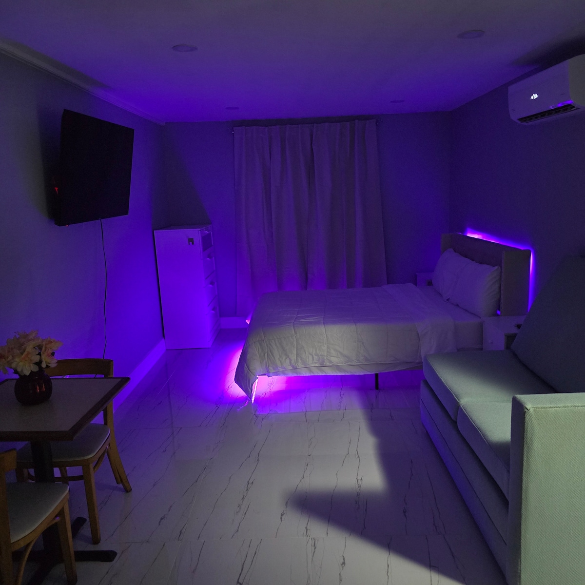 After a 15-minute journey from FLL Airport and you'll reach this newly remodeled apartment- ideal for couples (up to 2 guests). Change the LED lights to fit your mood! It is just a 20 minute drive to the iconic Wave Wall Beach at Las Olas. Spend your days exploring and your evenings unwinding in your unit. This apartment, while located within a multiunit property, offers complete privacy with exclusive access via keypad for you and your travel companions only. Check-in: 3 PM Check-out: 10 AM