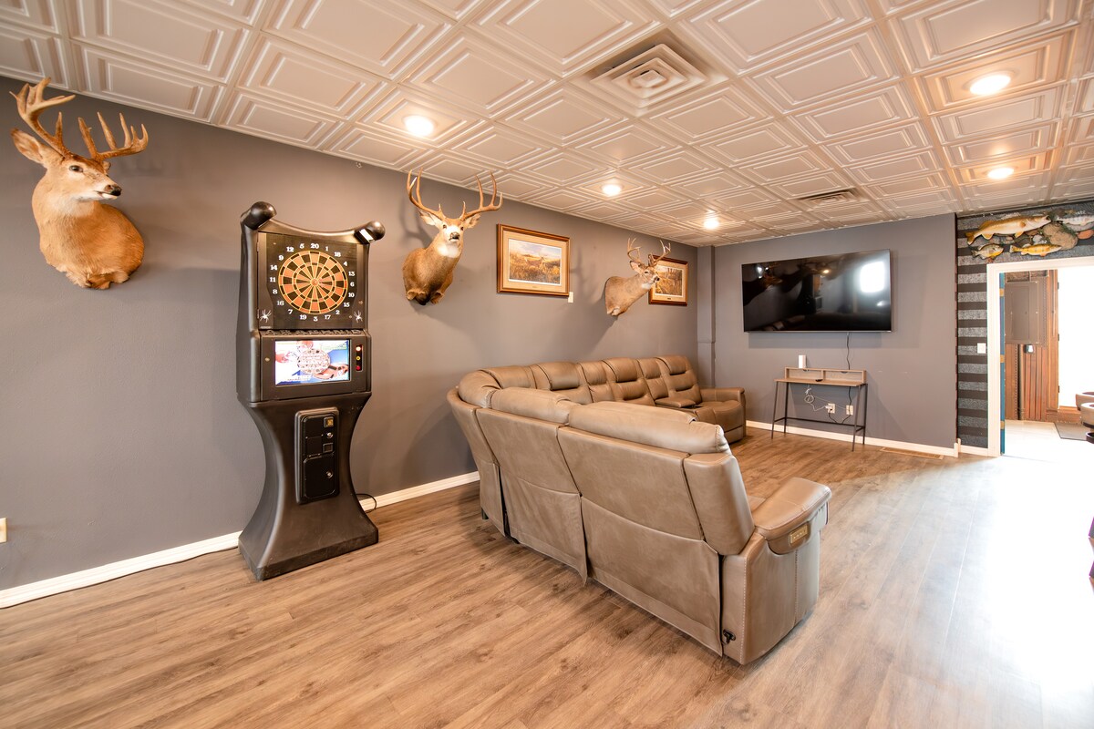 Le Lodge at the Lake se trouve à 800 mètres du lac Bitter et du lac Blue Dog et à quelques kilomètres des lacs Enemy Swim, Pickeral, Waubay et Rush. Nous sommes également à proximité de grandes zones de chasse. Nous avons beaucoup d'espace pour toute votre fête. Notre maison dispose d'une grande télévision, d'une connexion wifi, d'une table de babyfoot, de 2 garages pour se garer des éléments, de sièges extérieurs et d'un bol à feu, d'un grand barbecue et du jardin pour vous donner un peu d'intimité. Nous avons 3 chambres et une chambre pour au moins 10 personnes pour dormir.