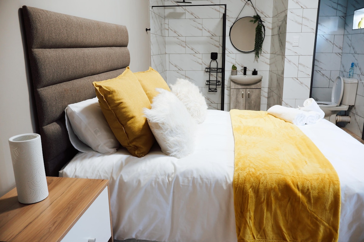 Appartement de luxe privé attenant à notre maison. Il est équipé d'un lit queen size, d'un kitchenette, et de la climatisation. La kitchenette dispose d'ensembles complets de vaisselle, de couverts, d'une bouilloire, d'un grille-pain, d'une cuisinière à induction, d'un four à micro-ondes, d'une friteuse à air et d'un réfrigérateur de bar dissimulé. La salle de bains dispose d'une immense douche de type spa et d'une salle de bains attenante. Wifi gratuit et accès gratuit à Netflix, Prime Video et Showmax. Les voyageurs peuvent se connecter à leur propre compte DSTV.