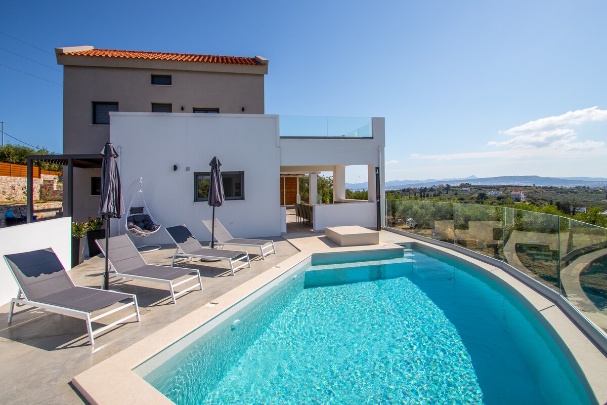 Retraite accueillante sur les collines avec vue sur la mer à Stalos