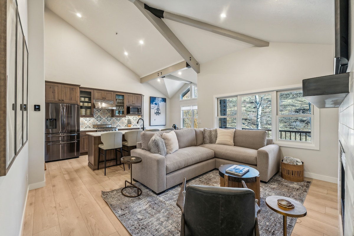 Perchée dans un bosquet isolé de trembles, cette propriété exclusive d'Upper Deer Valley offre le plaisir classique d'un chalet avec des voûtes en bois, des cheminées en pierre et un accès pratique à la montagne. Il suffit de marcher jusqu'à l'arrêt de bus devant la propriété pour accéder aux remontées mécaniques. Un pont panoramique vous guide vers la maison de ville de 232 mètres carrés qui peut accueillir 10 personnes dans 3 chambres (plus un loft), toutes avec salle de bain privée. Cuisine complète, terrasse privée, téléviseurs dans les chambres, aire de jeux, jacuzzi et sauna complètent cette retraite !