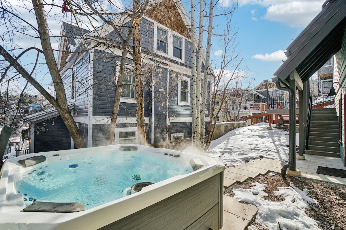 Préparez-vous pour des aventures tout au long de la saison au cœur de la vieille ville de Park City. Cet appartement de 2 chambres et 2 salles de bain peut accueillir 6 personnes, et vous serez à quelques pas de la piste Quit 'N Time de Park City Mountain et des restaurants, des boutiques et de la vie nocturne de Main Street. Évitez la navette – les pistes sont à 50 pas. Vous vous sentirez comme chez vous avec une cuisine équipée, un patio privé + barbecue, une climatisation centrale et une buanderie dans le logement. Restez connecté grâce à la connexion Wi-Fi de plus de 600 Mbit/s et à l'espace de travail adapté aux télécommandes. Profitez également d'un parking extérieur gratuit pour 2 véhicules.