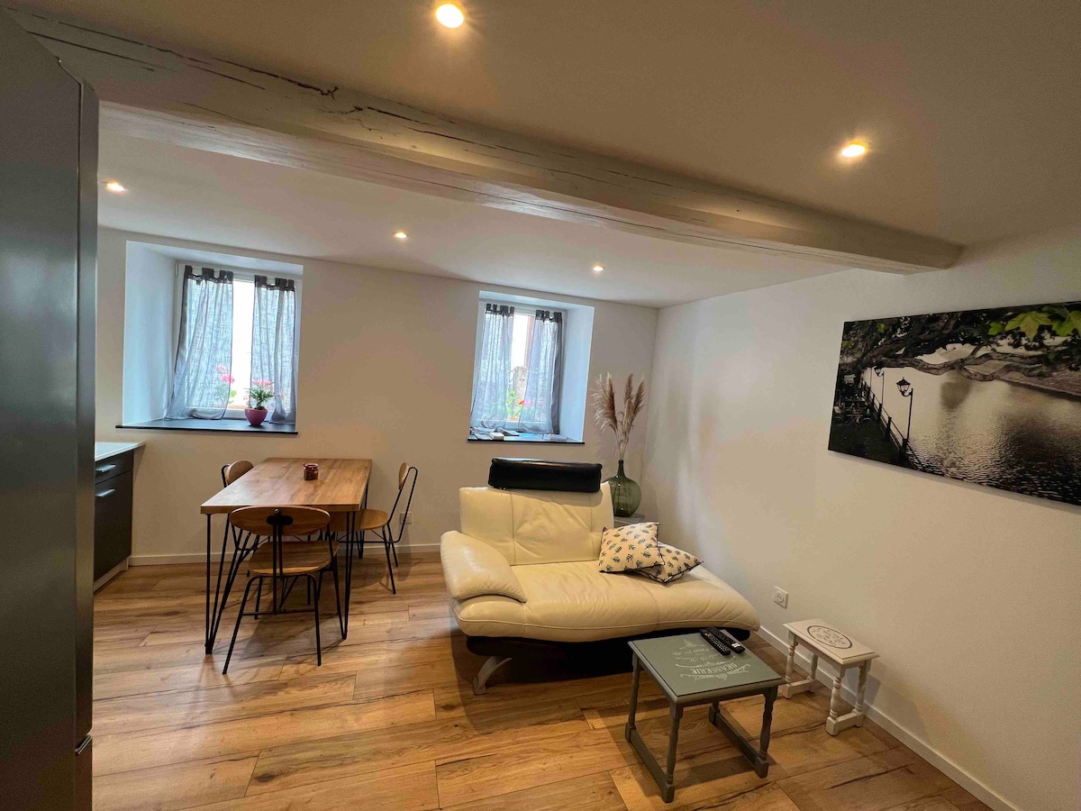 Appartement chaleureux de 37m2 avec entrée individuelle et extérieur au rdc d'une maison. Composé d'une kitchenette avec micro ondes, réfrigérateur/congel, plaque, four Une chambre avec lit king size 180 x200, une TV et une commode. Salle de bain avec douche, WC et machine à laver. Un salon lumineux équipé d'une TV ,WIFI et table d'appoint pour le coin repas. Un canapé lit 140x190 cm offrant un couchage confortable supplémentaire pour 2 personnes. Linge de lit et serviettes de toilette fournis.