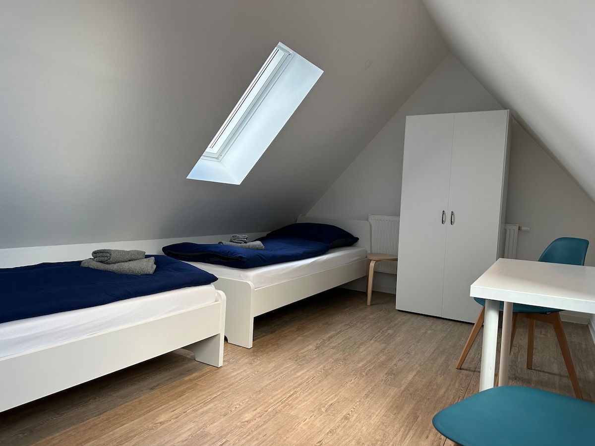 Willkommen in diesem schönen Penthouse, dass dir für einen tollen Kurz-oder Langzeitaufenthalt in der direkten Nähe vom Flughafen Stuttgart und der Messe alles bietet: → 4 Kingsize Doppelbetten → 2 Badezimmer → 3 Schlafzimmer für bis zu 8 Gäste → Smart-TV 75Zoll & NETFLIX sowie Amazon Prime → Bluetooth Kino-Soundsystem → Schnelles Internet mit I Pad → Fitness-Equipment & Tischtennis → NESPRESSO-Kaffee → Küchenzeile → Waschmaschine/Trockner → Freie Parkplätze → Fußläufig 2 Minuten bis zur Mall