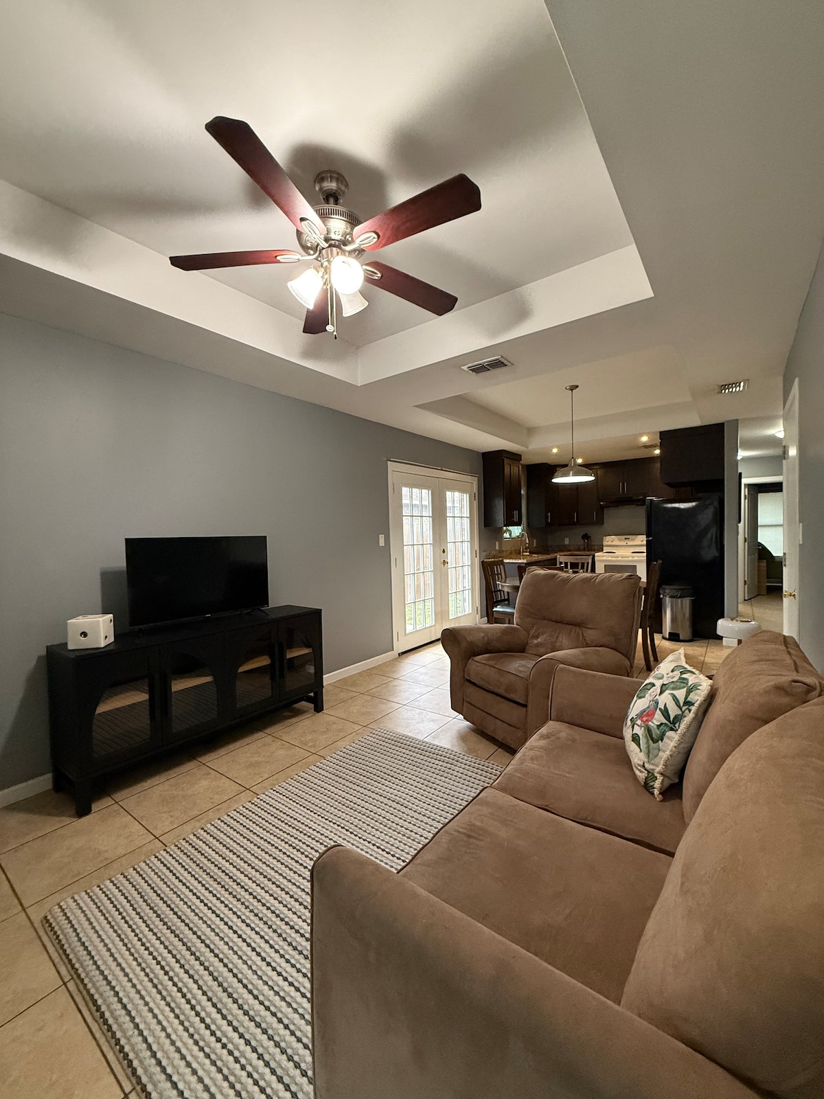 This peaceful Charming haven is situated out side of the city limits of Los Fresnos TX. For those looking for a quiet getaway, this cozy home is 21 miles drive from the crushing waves of SPI. Relax and recharge with your family, experience local restaurant, all within close driving distance! Create many lasting memories that will bring you back for more.