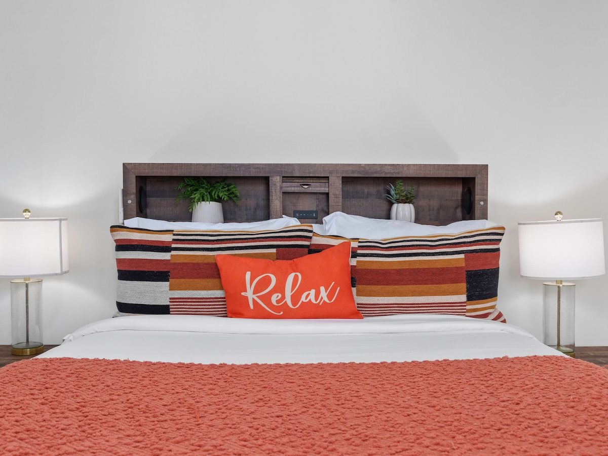 Détendez-vous et rechargez vos batteries dans cette suite privée sereine d'une chambre, conçue pour le confort, le calme et la commodité. Parfait pour les infirmières en déplacement, les couples ou les professionnels à la recherche d'un séjour calme et boutique à quelques minutes de l'autoroute 99 et des principaux employeurs. Le logement Cette suite lumineuse d'une chambre située dans le nord-ouest de Bakersfield allie des normes de propreté hôtelière à une chaleur familiale, avec un lit queen moelleux avec une tête de lit équipée d'une enceinte Bluetooth, une connexion Wi-Fi haut débit et un salon séparé pour plus d'espace.