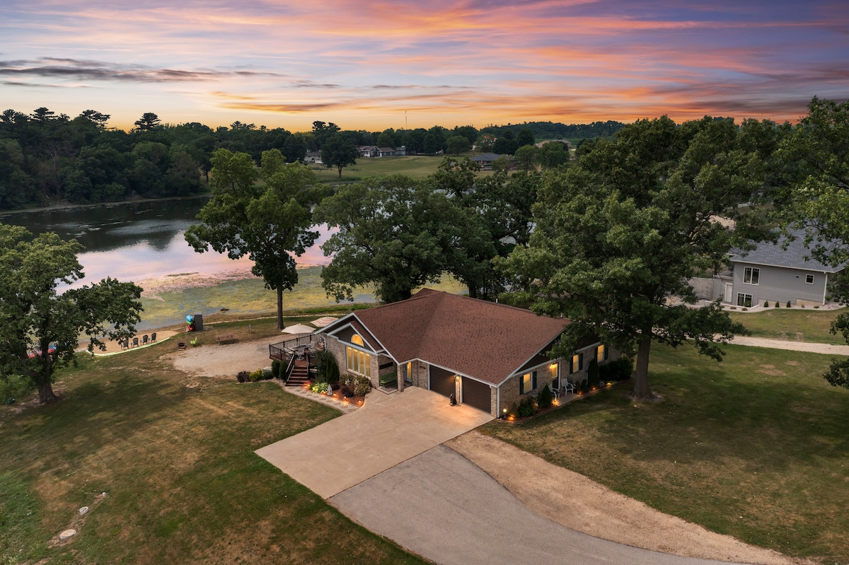 Détendez-vous dans cette propriété calme et élégante en bord de lac. Le niveau principal abrite une grande pièce spacieuse avec une belle cheminée et une cuisine ouverte et un coin repas avec des comptoirs en granit, un lave-vaisselle et des fenêtres du sol au sommet des plafonds voûtés donnant sur le lac. Le niveau inférieur accessible à pied abrite une cheminée, une télévision grand écran, un espace de jeu et un bar avec accès à un patio, un barbecue au gaz et un foyer situé au bord de l'eau.
