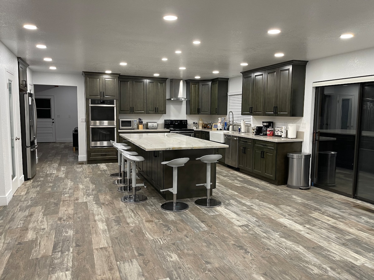 Bienvenue dans votre retraite de luxe dans le centre-ville de Modesto ! Cette maison moderne du milieu du siècle entièrement rénovée 2BR/1.5BA offre : • 1 150 pieds carrés de maison élégante à deux étages avec un espace de vie spacieux avec une nouvelle cuisine et des salles de bains • Grande cour avec de l'herbe pavée, des lumières Edison et une cheminée • Télévision connectée 65", WiFi 1200 Mbit/s, système de sécurité 4K et garage intelligent • Lit queen size avec bureau, plus deux lits jumeaux, tous avec des draps haut de gamme • À distance de marche des restaurants raffinés, de la vie nocturne et des attractions ;