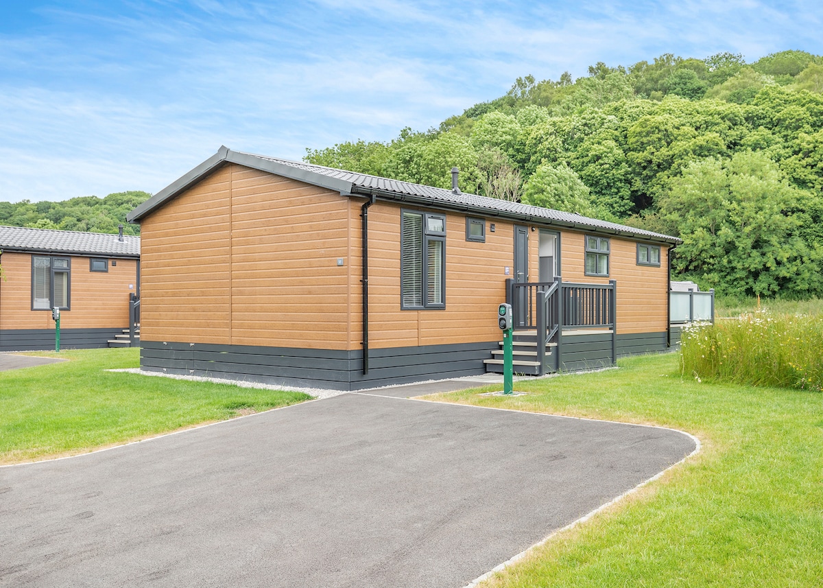 Redwood Lodge is a comfortably furnished self-catering lodge, nestled in woodland on a hillside overlooking the magnificent Dee Valley. The property features one double bed and two singles, making it perfect for couples or families with two children. The singles can be converted into a king-size bed, or if not needed as beds they can be converted to a sofa space. Please let us know how you would like the beds set up when you book. A travel cot is also available on request. There is a well-equipped kitchenette, with a sink, fridge, combination microwave/convection oven and electric hobs, along with all the cooking equipment you'll need to cook up a feast at the end of a long day out and about. Your private shower room is just across the gravel driveway, where there is plenty of parking space. In the evening, relax in the garden and enjoy a glass of wine on the decking as you watch the sun set across the valley, marvel at the spectacular dark skies and listen to the sounds of our resident tawny owl and barn owl. Located in the heart of the Clwydian Range and Dee Valley Area of Outstanding Natural Beauty, our lodges are the perfect base for an active getaway. There are spectacular walks on your doorstep, with the Dee Valley Way and the North Berwyn Way passing close by. There are also countless heritage trails and historic (and prehistoric) monuments in the surrounding area, as well as popular mountain biking routes. The village of Cynwyd has a local shop and post office, as well as a lovely dog-friendly pub serving good pub grub. Corwen is just a five-minute drive with more shops, including a chemist, bakery and butchers, as well as various cafes and takeaway options. Llangollen, Ruthin and Betws-y-Coed are all within half an hour's drive, while Lake Bala is closer still with its beautiful lakeside walks and National White Water Rafting Centre. Snowdonia is just a stone's throw away, and coastal destinations such as Llandudno, Conwy or Rhyl on the north coast and Barmouth, Harlech or Porthmadog on the west coast are all about an hour's travel. For anyone wanting a day out shopping or a day in the city, the historic Roman city of Chester is just fifty minutes by car, whilst Liverpool is about an hour away. We are a family-run business and live here with our two children and three dogs, along with a smallholding that includes a handful of geese and ducks, a goat and a flock of rescue hens providing us — and you — with fresh eggs every day. If you would like to meet our animals, please let us know and we will be happy to arrange this. We feel very lucky to live in our little slice of Welsh heaven and look forward to welcoming you here!