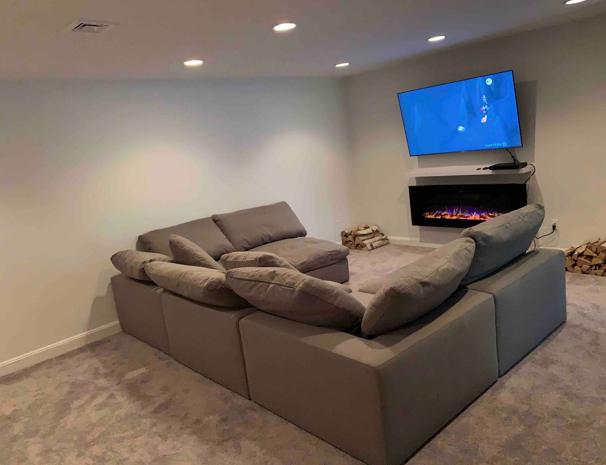 Le luxe rencontre le plaisir dans notre spacieux chalet Pocono pour 14 personnes. Profitez du putting green ou de la terrasse avec piscine privée. Détendez-vous dans le sauna, le jacuzzi et les hamacs, ou rassemblez-vous autour du brasero. À l'intérieur, vous trouverez du poker, des fléchettes, du basket-ball, du billard, du ping-pong, du baby-foot, du skeeball, du air hockey. Avec deux espaces de vie, une cuisine équipée et des chambres confortables, il y a de la place pour tout le monde. À quelques minutes des pistes de ski, des parcs aquatiques, des terrains de golf et des sentiers de randonnée : parfait pour les familles, les réunions et les escapades entre amis. Chargeur électrique disponible