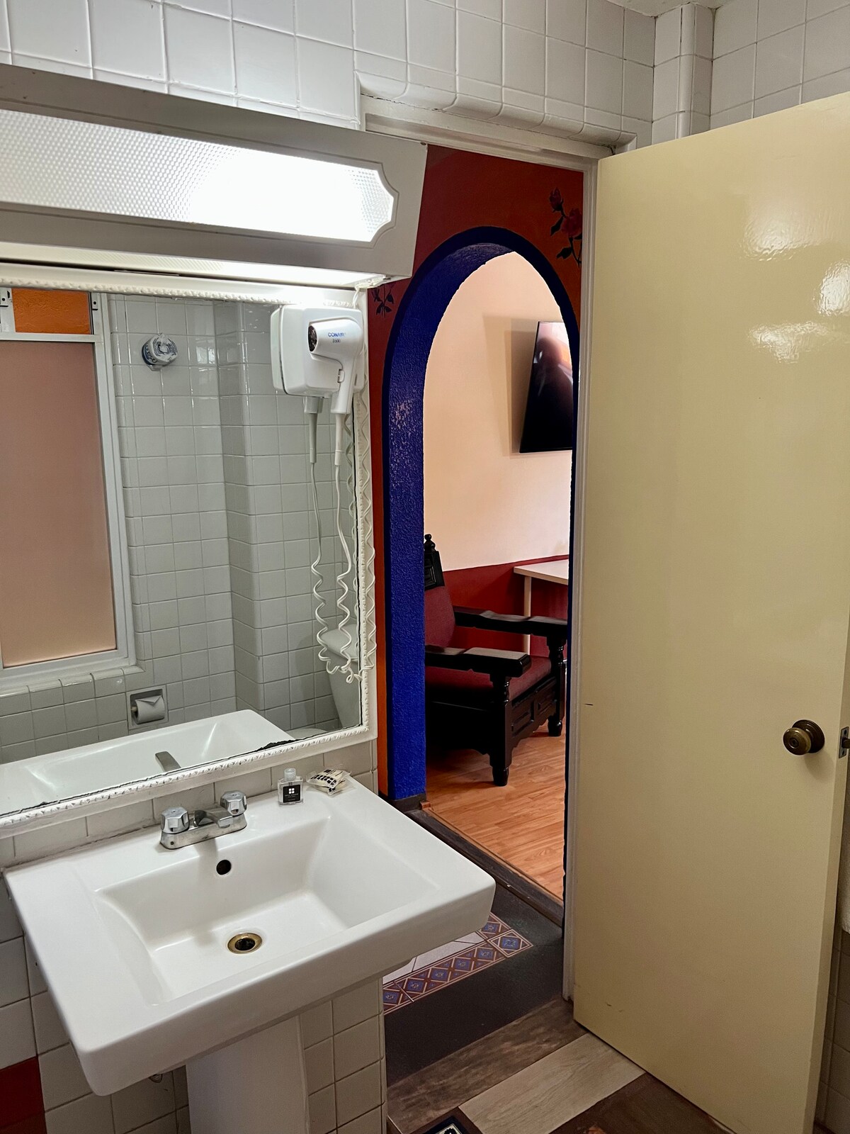 Cette chambre confortable fait partie d'une maison mexicaine historique magnifiquement restaurée construite en 1926. La chambre donne sur la cour intérieure et a une lumière naturelle limitée, elle a donc tendance à être plutôt sombre. Veuillez garder cela à l'esprit avant de réserver. Situé à Santa María la Ribera, vous serez à proximité de l'aéroport et de nombreuses attractions principales de Mexico. Le quartier est un quartier mexicain authentique de classe moyenne rempli de cafés locaux, de restaurants et de vie quotidienne.