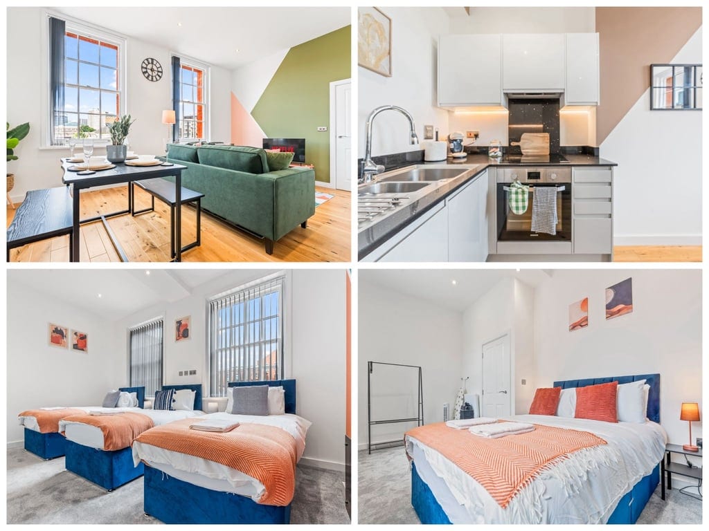 Stay in the heart of Birmingham City Centre in our stylish 2-Bed Deluxe Apartment, perfect for up to 6 guests. Enjoy a double bedroom, twin bedroom, and sofa bed, plus free secure parking, super-fast Wi-Fi, and Smart TV. The fully equipped kitchen makes dining in easy, while shops, bars, Bullring, HS2, and the Custard Factory are just minutes away. Modern décor, hotel-quality linen, and self check-in make your stay comfortable and hassle-free.