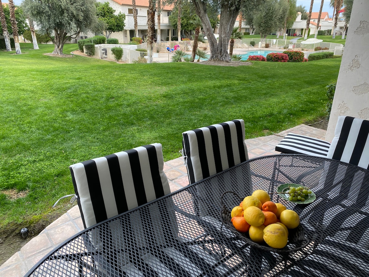 entouré d'arbres fruitiers et de ciel bleu, mais toujours proche de l'Acrisure Arena, Marriot, Eisenhower et Betty Ford. Golf, tennis, sentiers de randonnée, restaurants, shopping, cinéma, 4 casinos avec divertissements. Veuillez lire quelques-uns de nos commentaires incroyables, près de 1 000 !Retraite romantique ou parfaite pour un séjour pour assister à des mariages,des conférences, etc. Parking Wi-Fi haut débit gratuit. Expérience relaxante très tranquille. Logement privé avec piscine et spa, max 4 adultes dans la zone de la piscine.