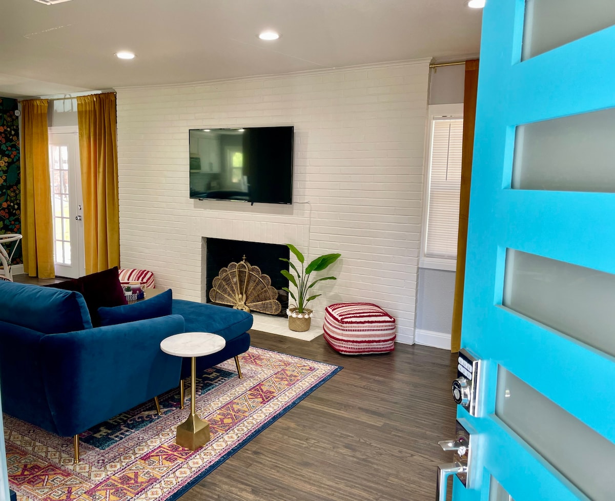 Nommée en l'honneur des PAONS sauvages 🦚🦚 qui errent dans le quartier - bienvenue à Dallas Peacock House ! Une maison colorée et confortable avec 2 chambres et 1 salle de bain. Élégamment meublée avec des téléviseurs et Netflix dans chaque pièce. Cuisine entièrement approvisionnée avec toutes les épices et ustensiles de base. Bar à café entièrement approvisionné avec Keurig. Cour arrière récemment rénovée et clôturée avec patio meublé, brasero, hamac, éclairage de marché. Grand porche couvert avec balançoire. À seulement quelques minutes de Bishop Arts, du zoo de Dallas et du centre-ville !