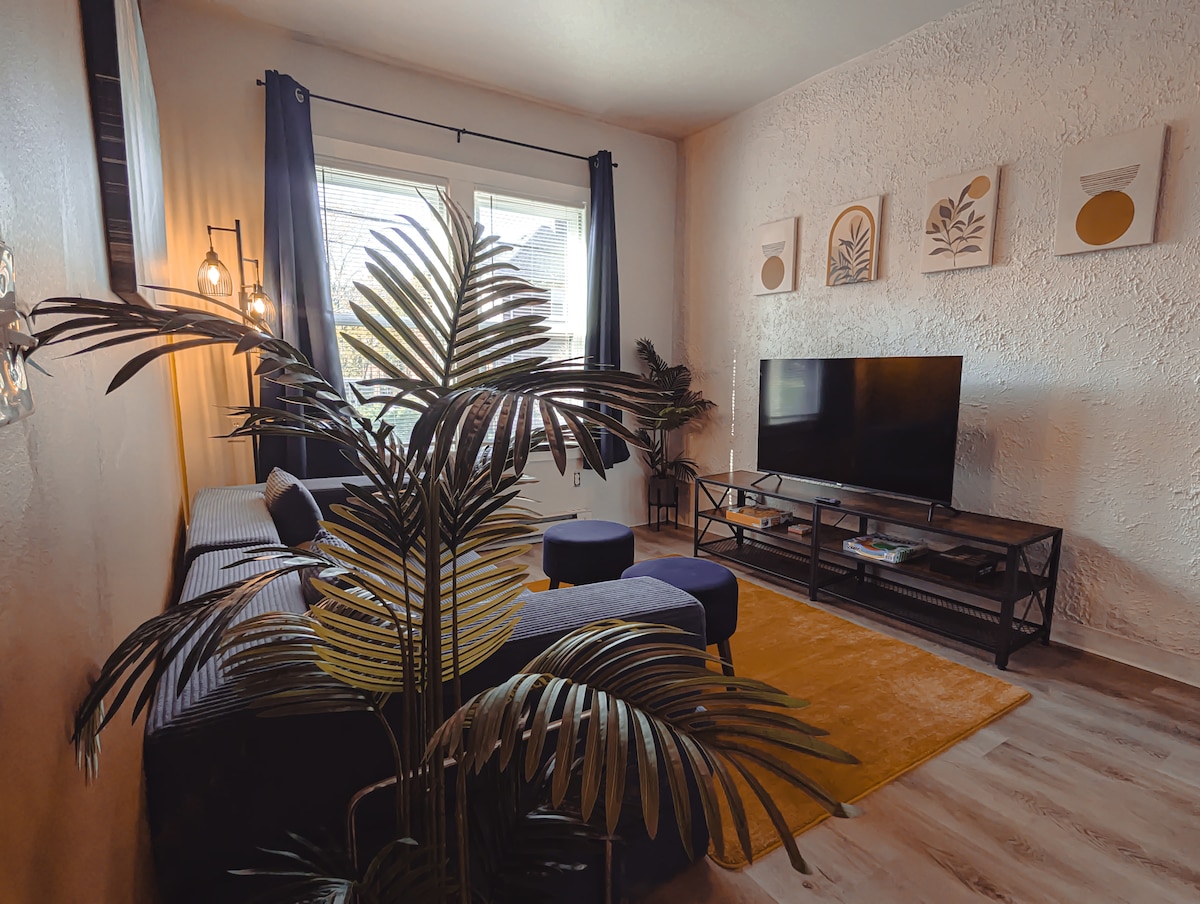 Profitez d'une expérience élégante dans cet appartement situé au centre. Situé à Midtown Detroit avec parking fermé. Juste devant votre porte se trouve la gare Q-Line et Amtrak. À quelques minutes du centre-ville de Détroit, et à seulement 7 minutes en voiture de Little Caesars Arena et Ford Field… en plein cœur de tout. Une attention particulière est accordée pour s'assurer que tous vos besoins sont satisfaits, en particulier votre sommeil ! Il y a un café à distance de marche et d'autres meilleurs restaurants locaux tels que Oak & Reel et Yum Village.