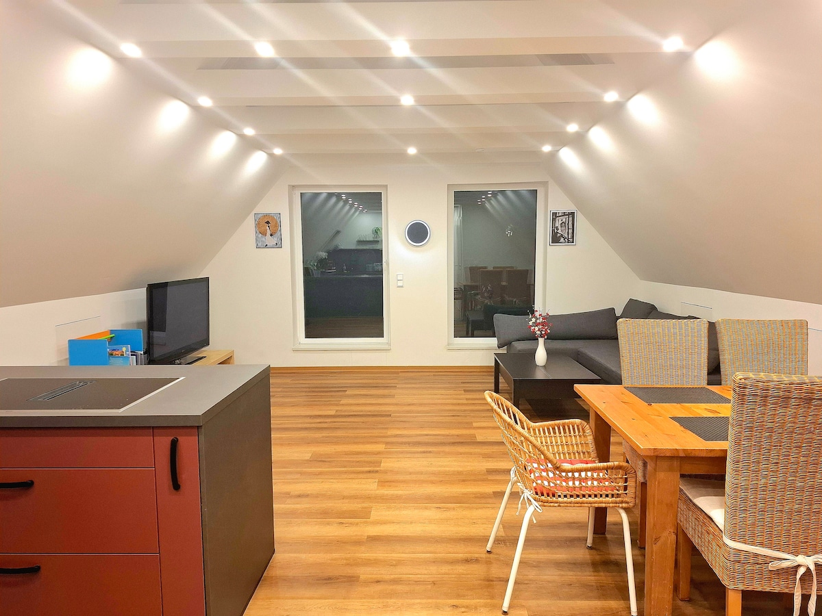 Bienvenue dans notre appartement fraîchement rénové. Ici, trois chambres modernes et verrouillables joliment décorées vous attendent avec deux lits doubles (2 m, 1,4 m) et un canapé-lit pour deux personnes. Deux salles de bains avec machine à laver et la cuisine font de l'appartement un lieu de détente pouvant accueillir jusqu'à 6 personnes. Du lundi au samedi, il y a des produits de boulangerie frais sur réservation. Que ce soit en tant qu'appartement de vacances pour la famille, pour le week-end en couple ou en tant qu'appartement de monteur : nous nous réjouissons de vous accueillir !