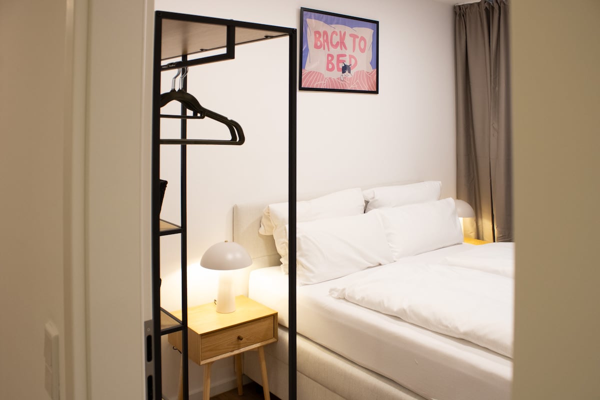 Nous vous proposons une base temporaire alliant le confort d'un appartement avec le service d'un hôtel. Chez STAYERY, vous pouvez également faire tout ce que vous feriez à la maison et plus encore. Après une journée à découvrir le quartier, vous pourrez vous détendre dans votre lit surdimensionné ou prendre une bière dans le salon avec vos voisins. Cuisinez votre repas préféré dans votre kitchenette ou détendez-vous avec une partie de Mario Kart dans le loft. Tout comme à la maison. Vous êtes les bienvenus.