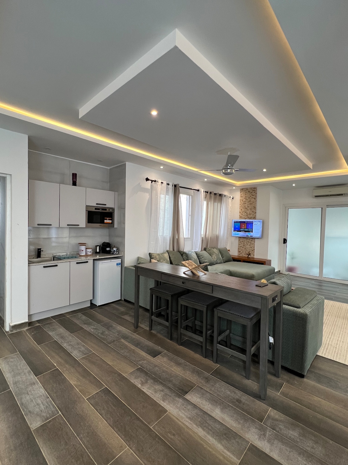Bienvenue dans notre luxueux appartement tout neuf, situé en face de l’arrêt du Bus Rapid Transfer ( BRT ) de liberté 6, pensé pour offrir une ambiance cosy et apaisante. De la baignoire hydromassante, à la cheminée électrique en passant par les enceintes du plafond, tout est choisi avec attention . Le logement a également un joli patio privé pour savourer un café le matin, un verre en fin de journée Notre appartement vous offre tout le confort nécessaire pour un séjour inoubliable