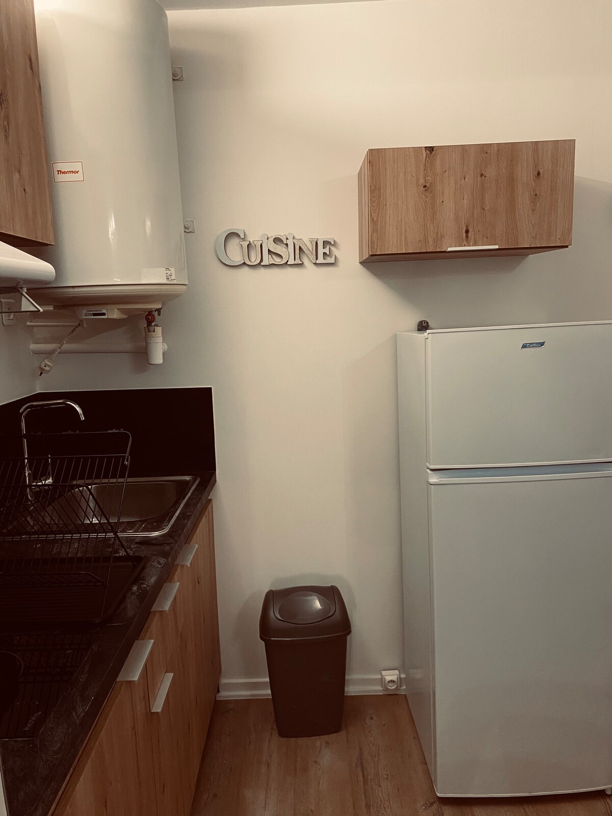 Studio de 22 m², meublé, dans une résidence, en centre ville de Parthenay. Résidence sécurisée (porte à code et présence d'un gardien). Un salon salle à manger contenant une table haute (4 places) et un BZ (qui fait lit 2 places). Une cuisine séparée, équipée. Un petit balcon. Pas de charge autre que le loyer. Possibilité de loger à plus de 2 avec des matelats d'appoints (à convenir avec les propriétaires). Studio refait à neuf récemment.