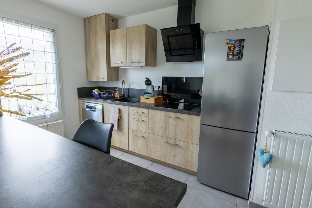 Idéal pour accueillir jusqu’à 6 personnes, pas de voiture tout est à proximité immédiate, vous y trouverez tout ce qu’il faut pour des vacances réussies. Les + qui font la différence : Vue plein sud sur les montagnes depuis le balcon (avec transats et salon de jardin!) 6 couchages confortables : 1 lit (160x200) + 4 lits simples (80x190) Rangements optimisés Cuisine full équipée : grand frigo, four, micro-ondes, Senseo, appareil à raclette, crêpière, croque-monsieur