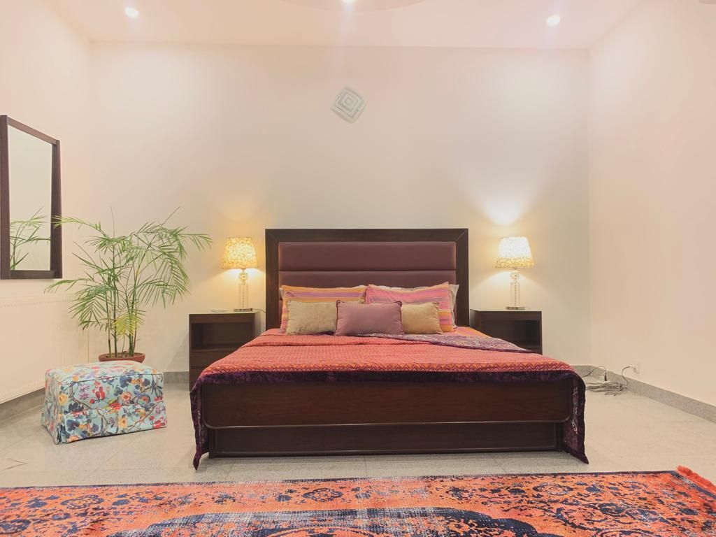 No other rental beats this lavish, Centrally located, secure & immersed in serenity beautifully designed & tastefully furnished independent 3 bedrooms residence with private entrance & parking for families, business travelers & anyone looking for a Royal luxury Home @ Central Location. Soak up the modern & vintage charm of this Royal brand new villa. Extraordinarily lavish designer furnishing, spacious rooms, greenery, spectacular views & workplace. Large beautiful garden to host gatherings.
