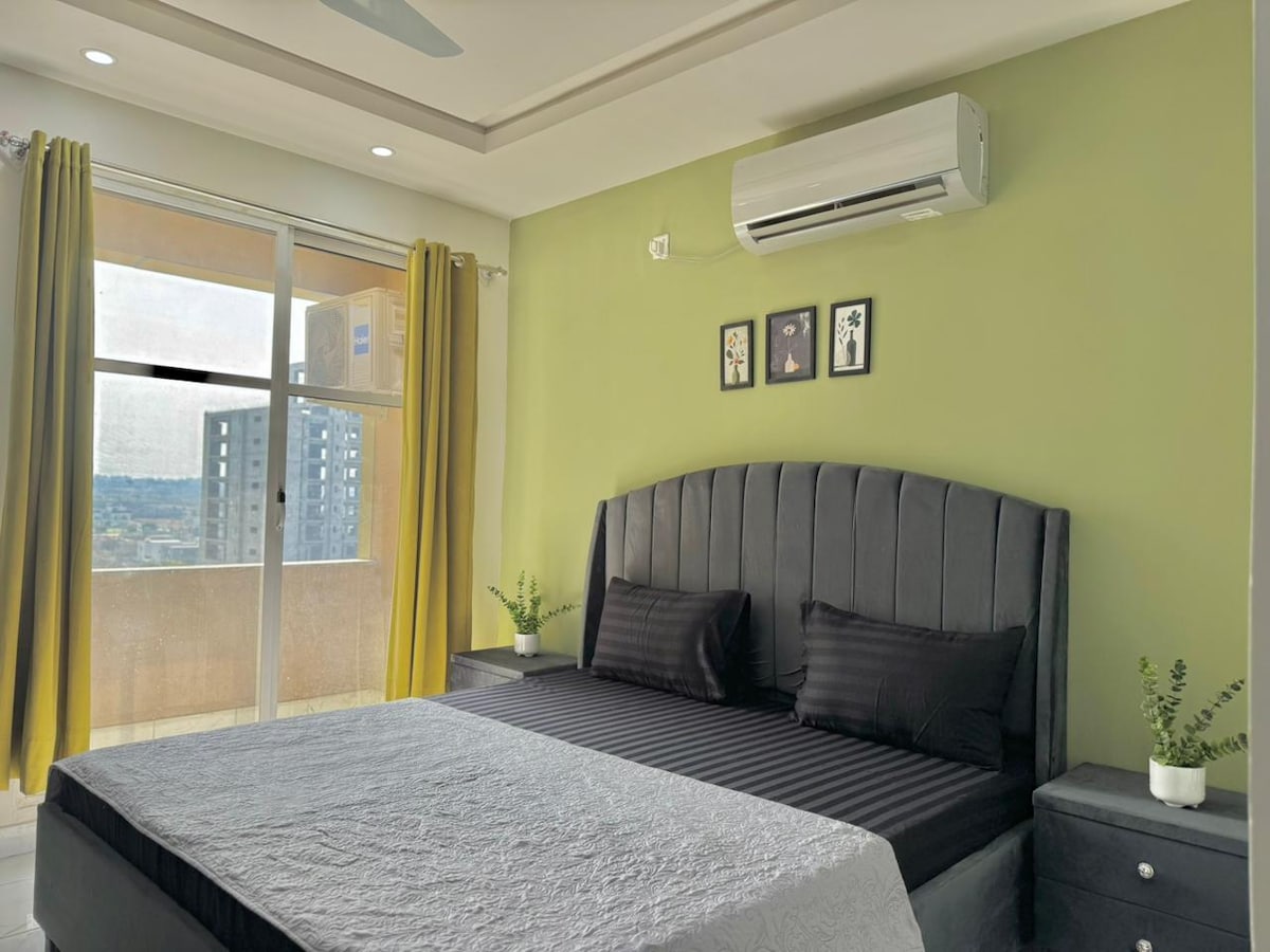 🛏️ Lit King Size et balcon privé avec vue imprenable. 📺 Télévision LED intelligente 55 pouces et Wi-Fi 30 Mbps. 🍽️ Cuisine moderne avec des appareils haut de gamme. ❄️ Climatisation à onduleur et 💨 désodorisants automatiques. 🔐 Serrures numériques et décoration élégante. 🏙️ Au-dessus du centre commercial Zeta, à quelques pas du centre commercial Giga. 🌄 Vue sur la ville et la colline. Parfait pour les familles, les couples et les voyageurs d'affaires. 🪪 CNIC requis (18+). 🚭 Interdiction de fumer/d'organiser des événements. ✅ Réservez dès maintenant pour profiter du luxe et de la sérénité.